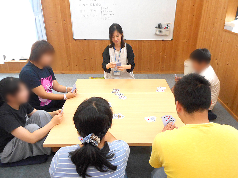 少人数のグループでカードゲームなどを介してコミュニケーション能力を養います。